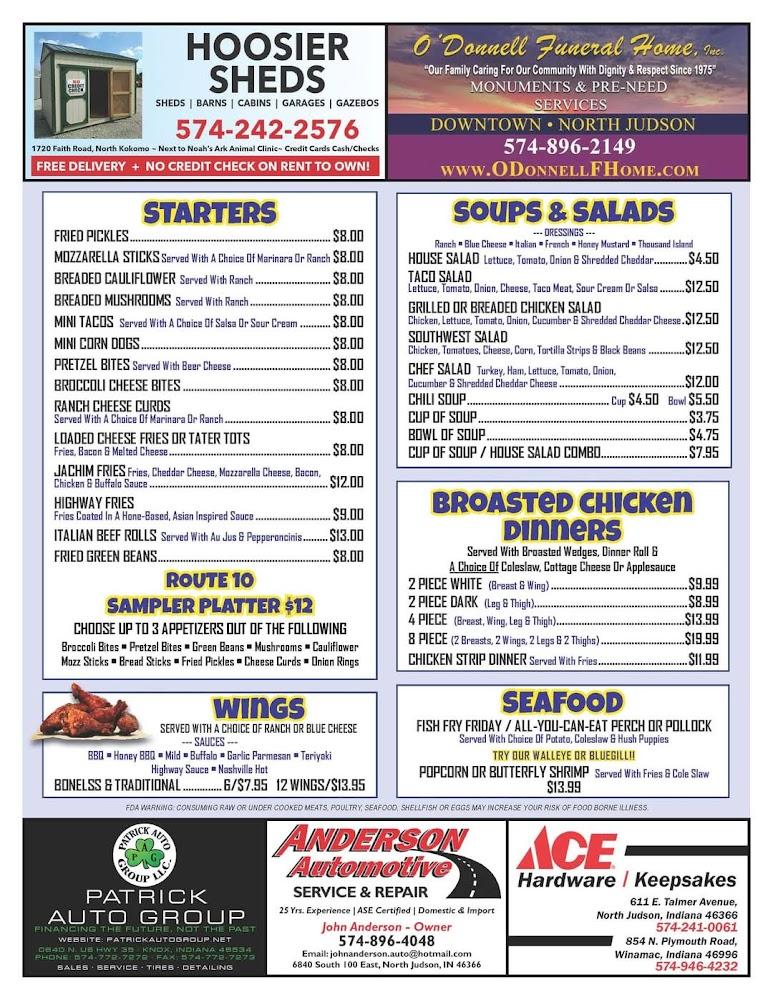 Welcome to Judson's Route 10 Bar & Grill, a vibrant destination in North Judson, IN, where great food meets an inviting atmosphere. Located at 613 W Talmer Ave, we offer a diverse menu featuring delicious pizzas, tantalizing chicken, and our famous Italian beef sandwiches, all paired with an extensive selection of craft beers and signature cocktails. Enjoy our cozy outdoor terrace, catch live concerts, or watch your favorite sports events in a relaxed setting. With accessible facilities and a family-friendly vibe, Judson's is perfect for solo diners, groups, and tourists alike. Visit us today for a memorable dining experience!